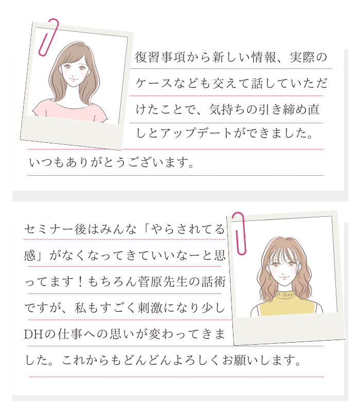 - 対象:歯科医師、歯科衛生士、歯科助手、受付